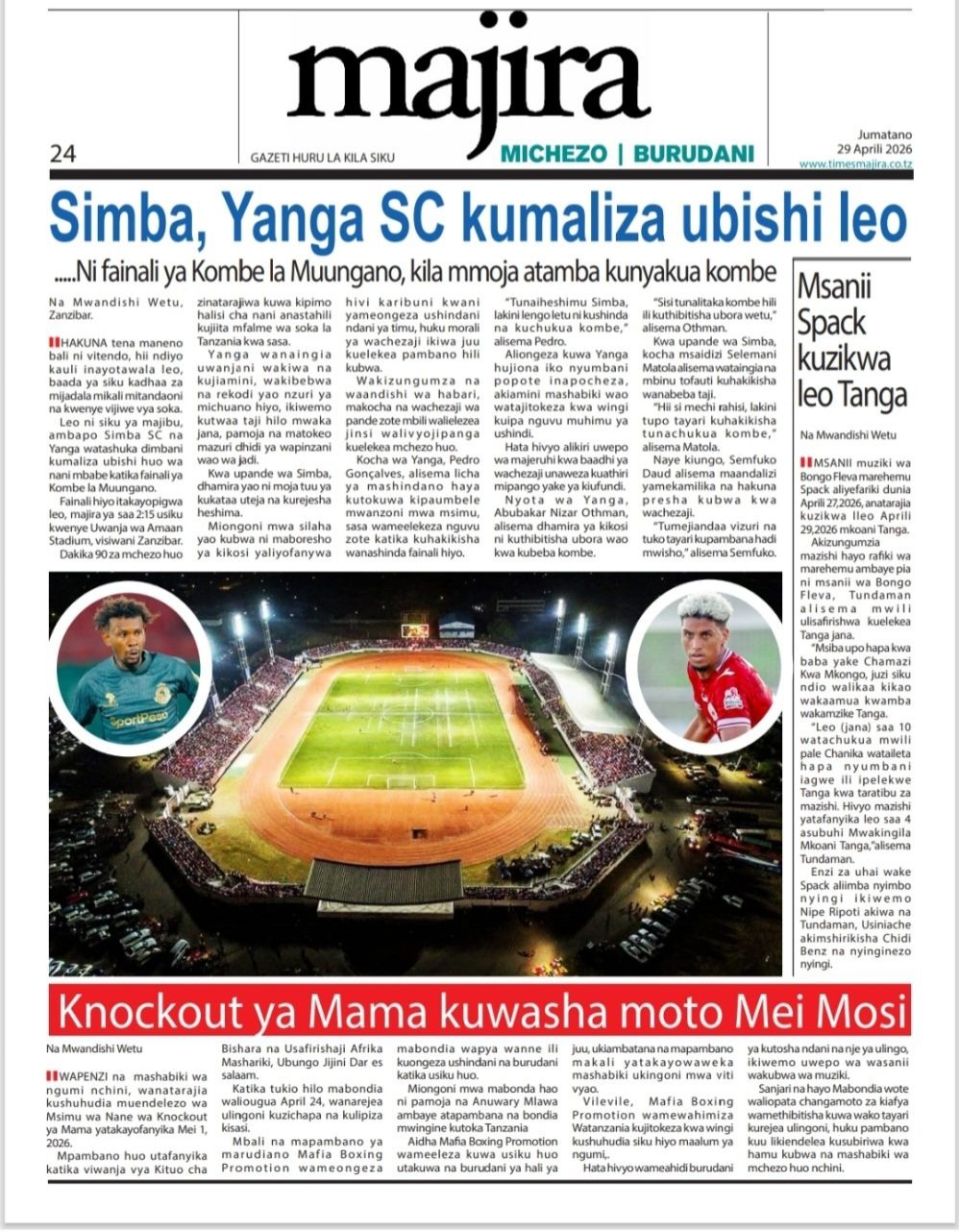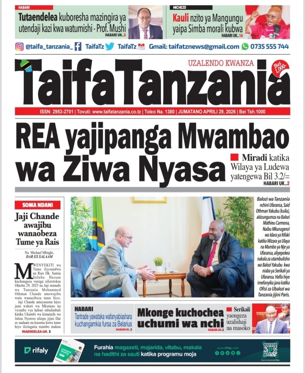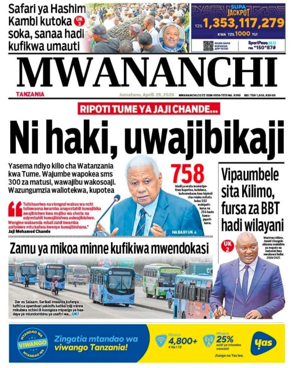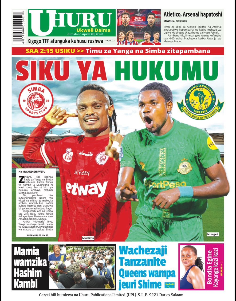 Habari kubwa kurasa za magazeti ya leo jumatano April 29, 2026 Posted by assengablogtz@gmail.com Habari kubwa kurasa za magazeti ya leo jumatano April 29, 2026 Peruzi kurasa za mbele za magazeti ya leo jumatano habari za michezo, siasa na burudani Image with Link assengablogtz@gmail.com April 29, 2026