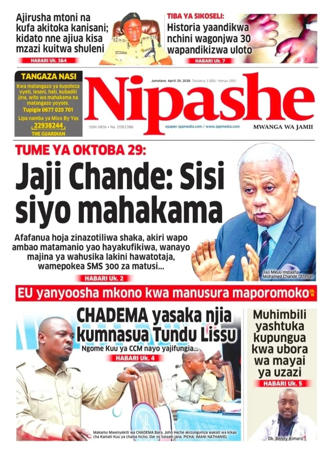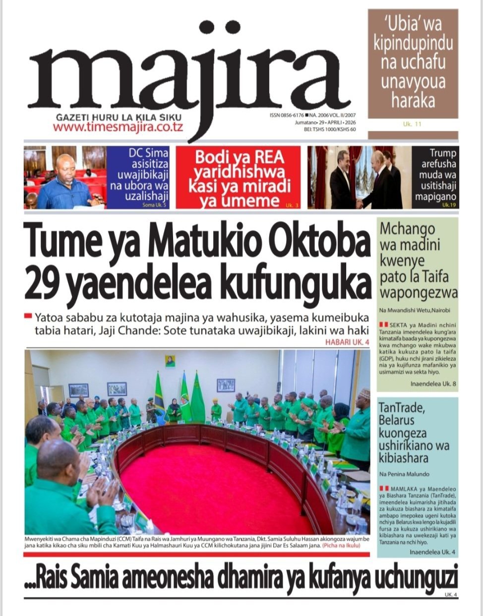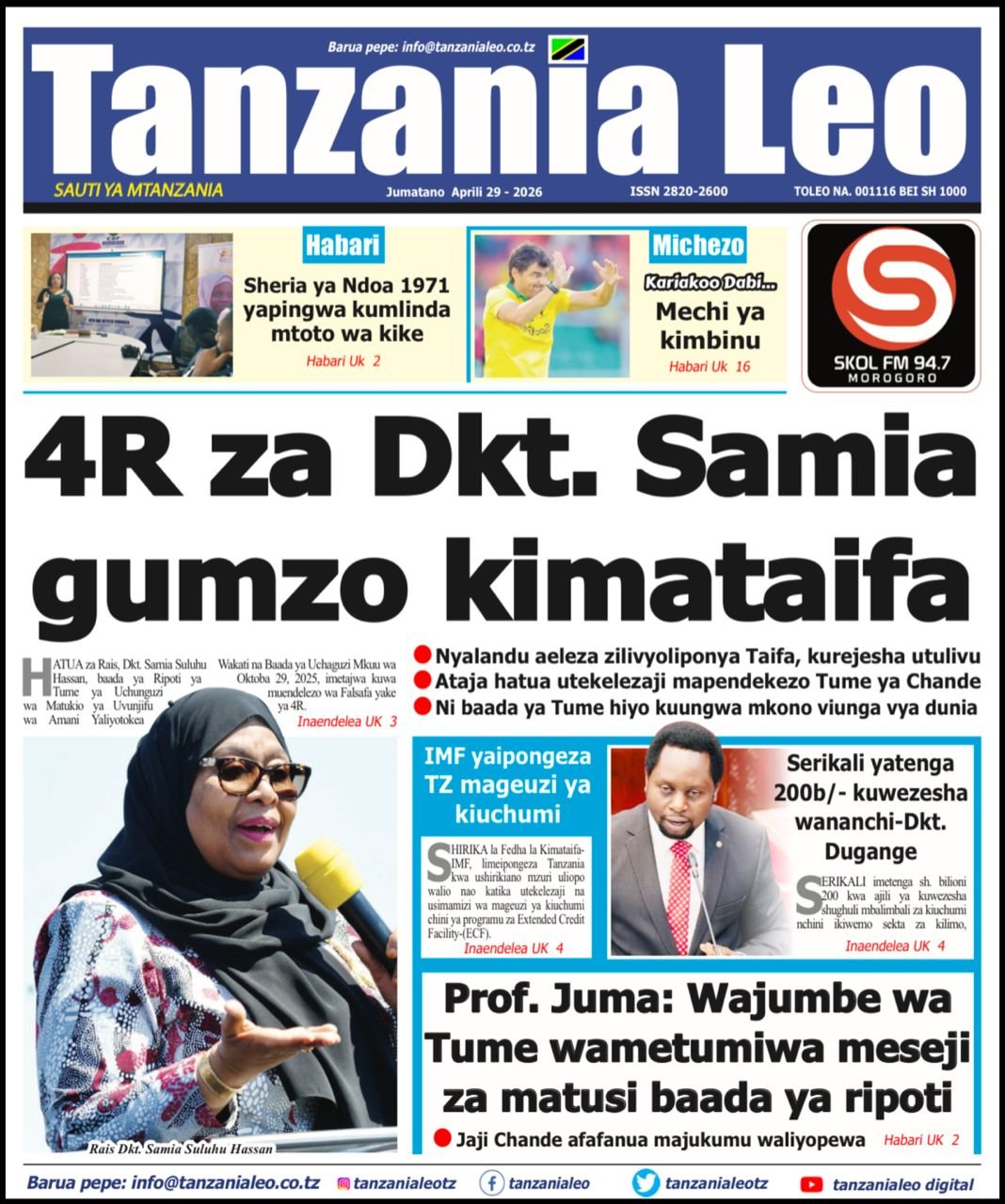 Habari kubwa kurasa za magazeti ya leo jumatano April 29, 2026 Posted by assengablogtz@gmail.com Habari kubwa kurasa za magazeti ya leo jumatano April 29, 2026 Peruzi kurasa za mbele za magazeti ya leo jumatano habari za michezo, siasa na burudani Image with Link assengablogtz@gmail.com April 29, 2026