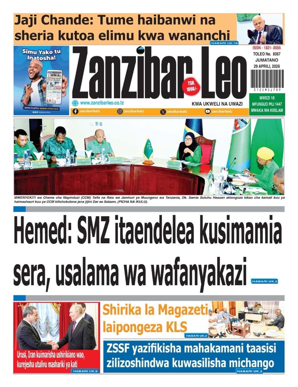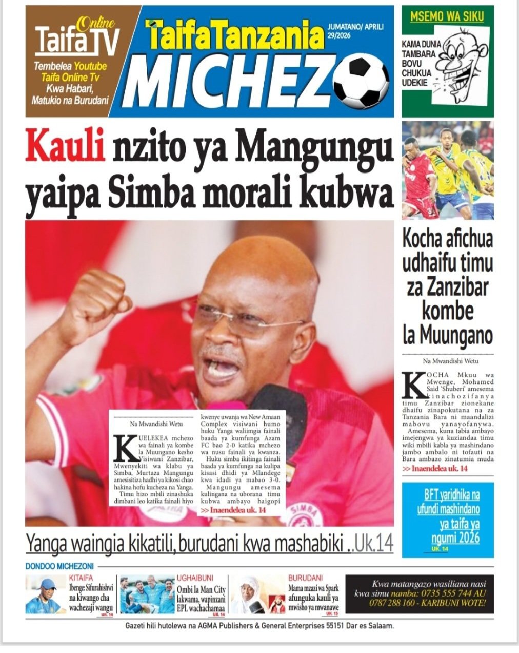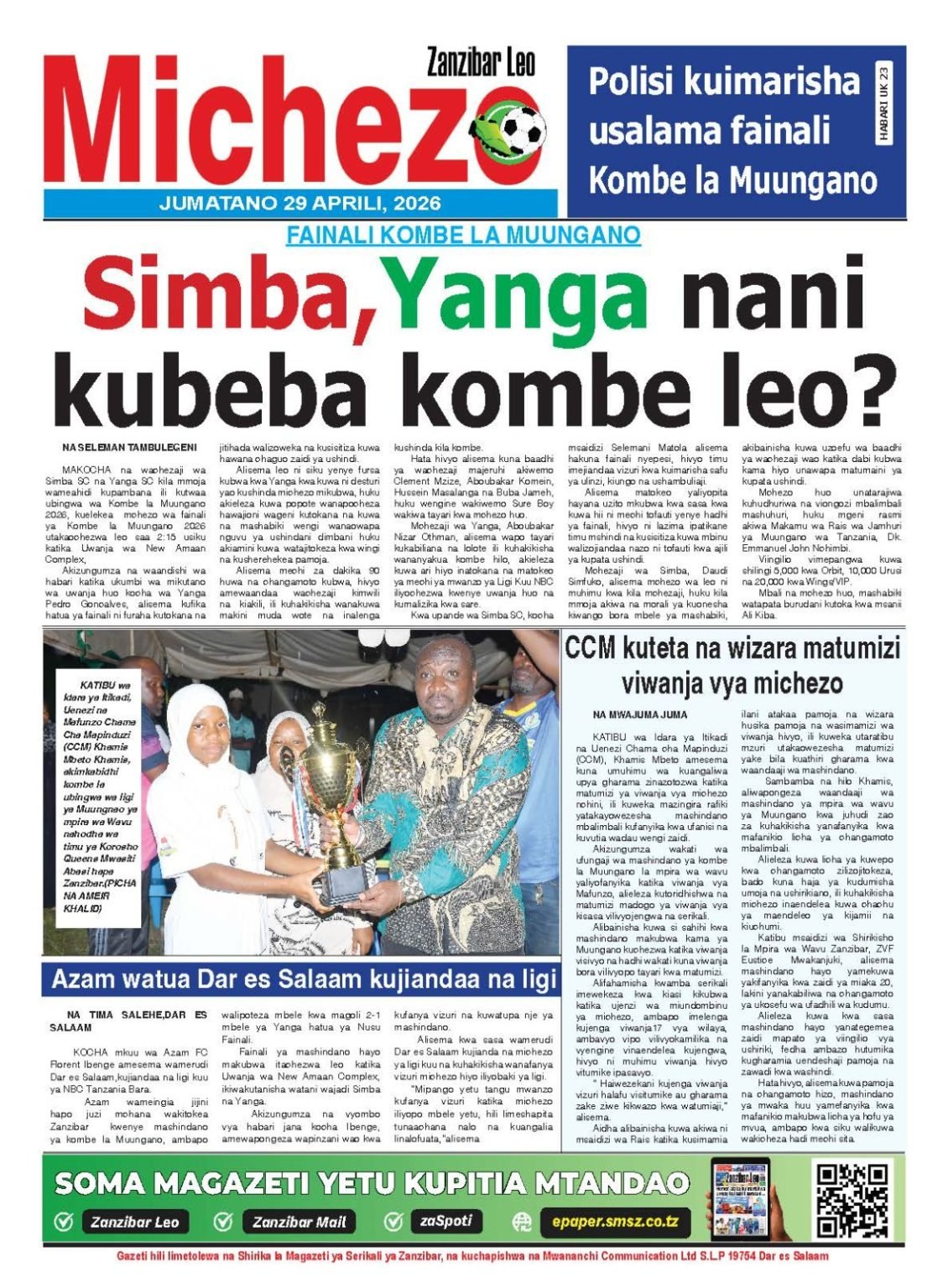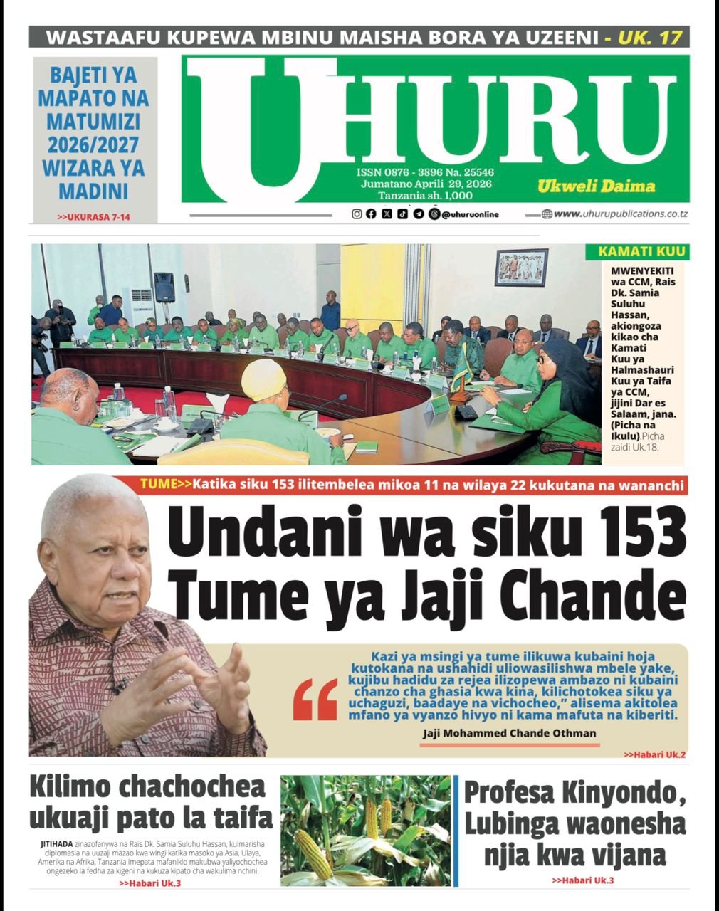 Habari kubwa kurasa za magazeti ya leo jumatano April 29, 2026 Posted by assengablogtz@gmail.com Habari kubwa kurasa za magazeti ya leo jumatano April 29, 2026 Peruzi kurasa za mbele za magazeti ya leo jumatano habari za michezo, siasa na burudani Image with Link assengablogtz@gmail.com April 29, 2026
