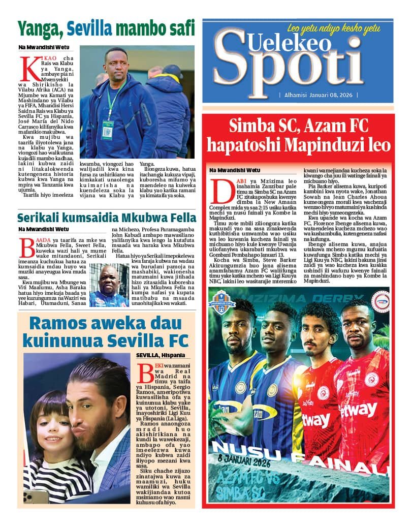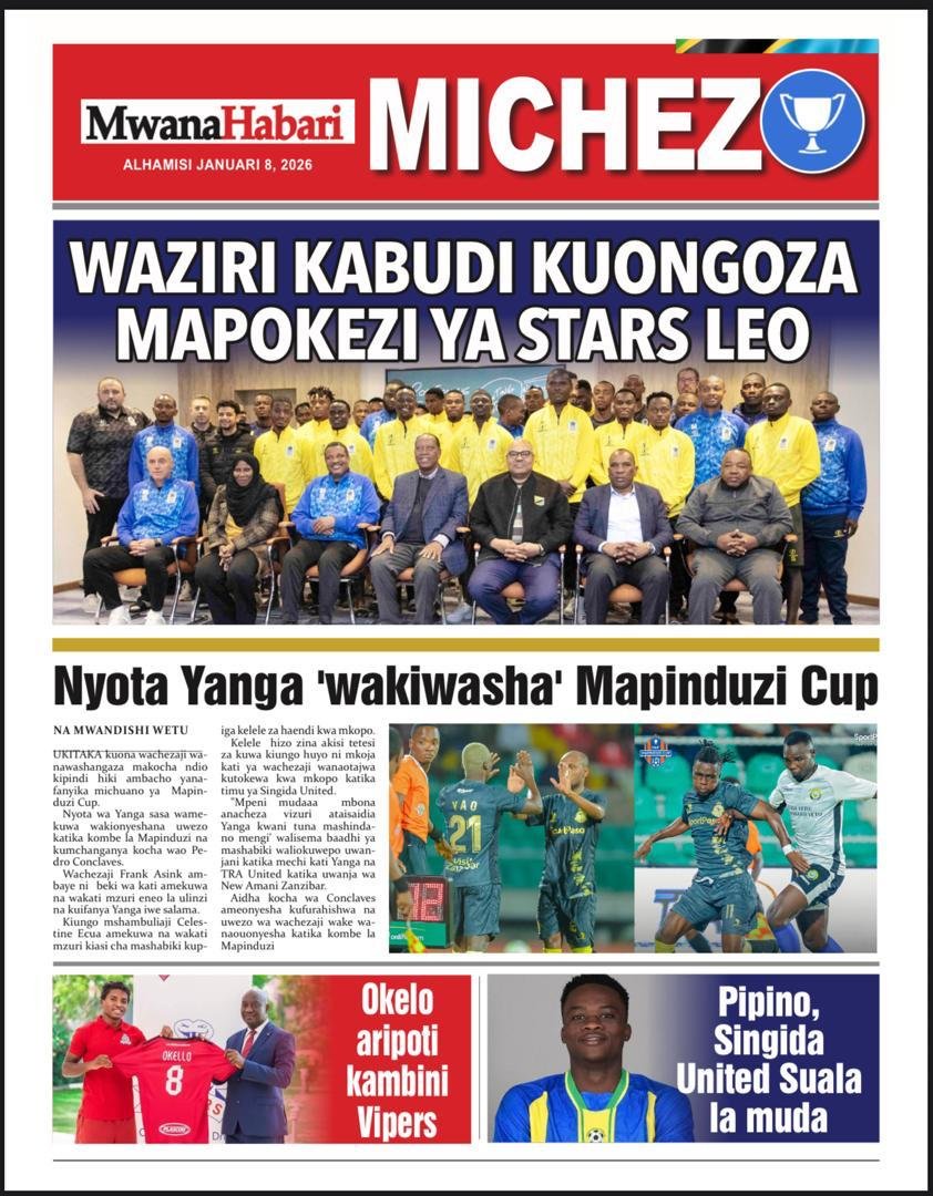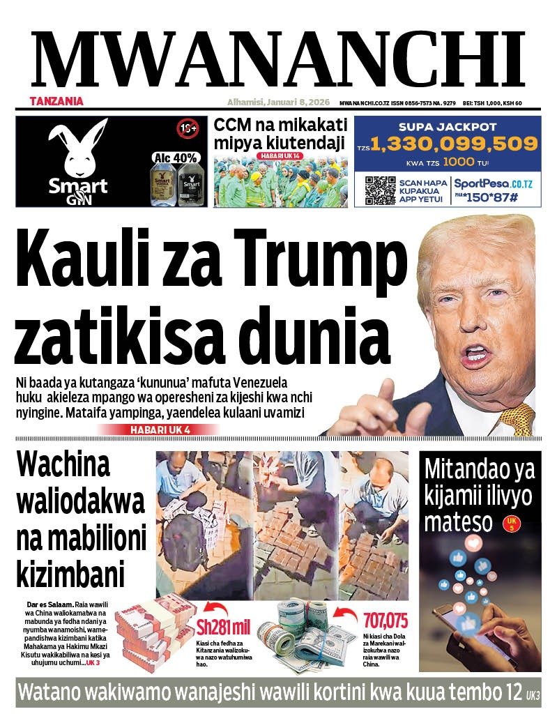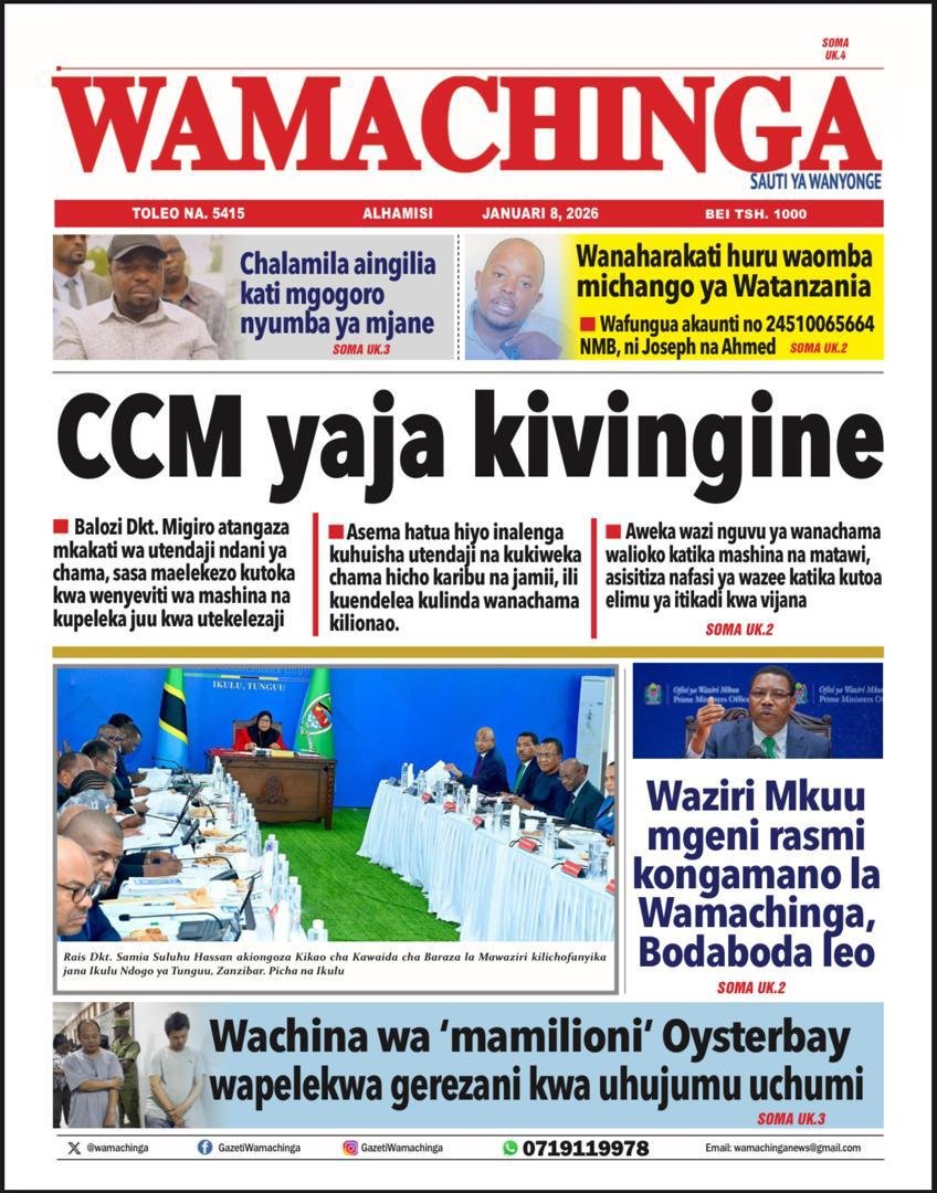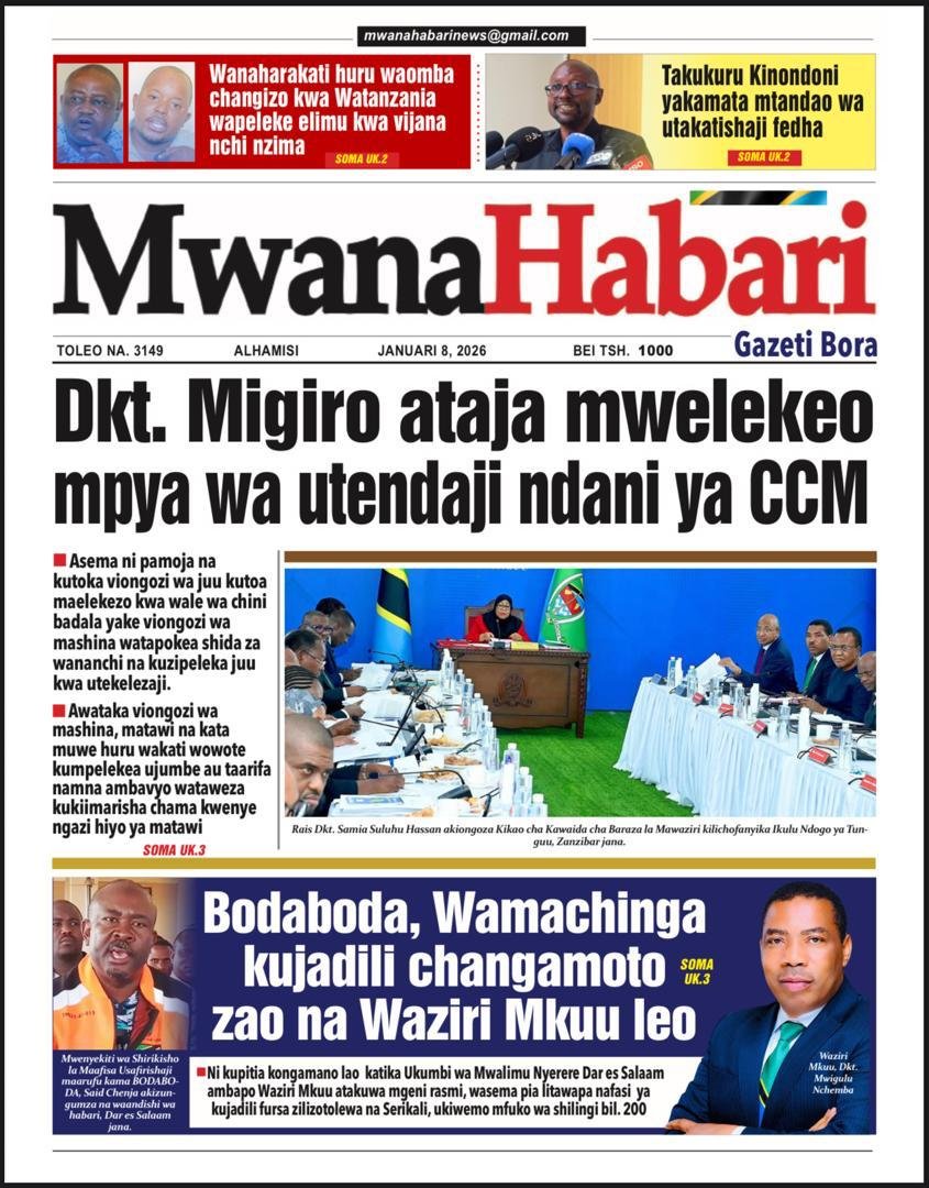 Magazeti ya leo Januari 8, 2026 Posted by assengablogtz@gmail.com Magazeti ya leo Januari 8, 2026 Image with Link Magazeti ya leo Januari 8, 2026, Pitia vichwa vya habari katika magazeti ya leo ya Alhamisi January 8, 2026. assengablogtz@gmail.com January 8, 2026