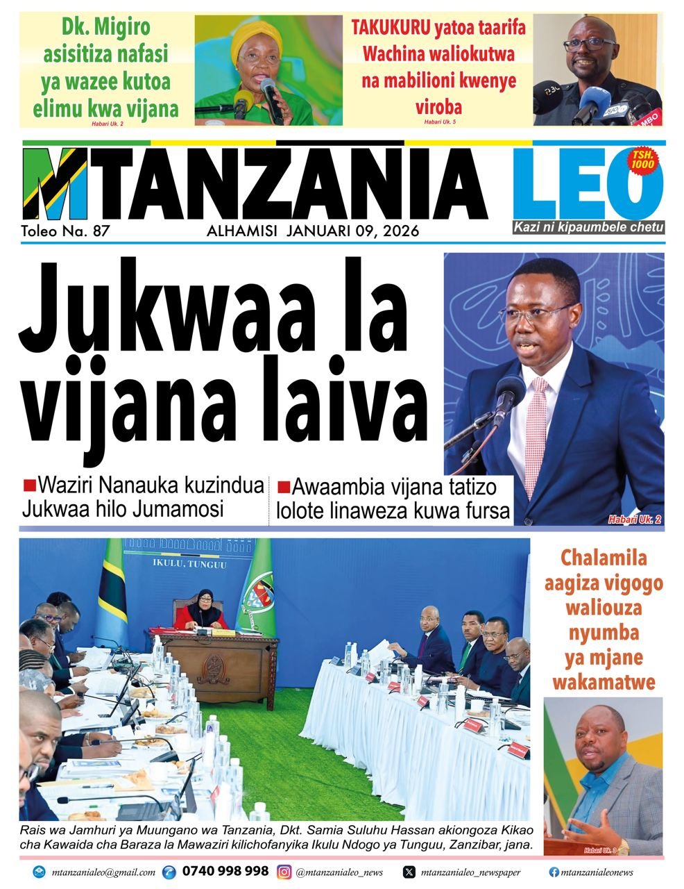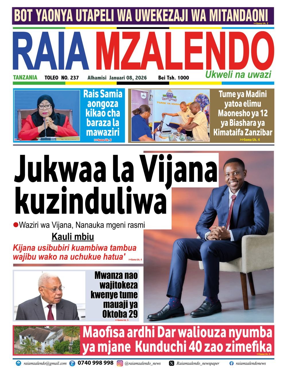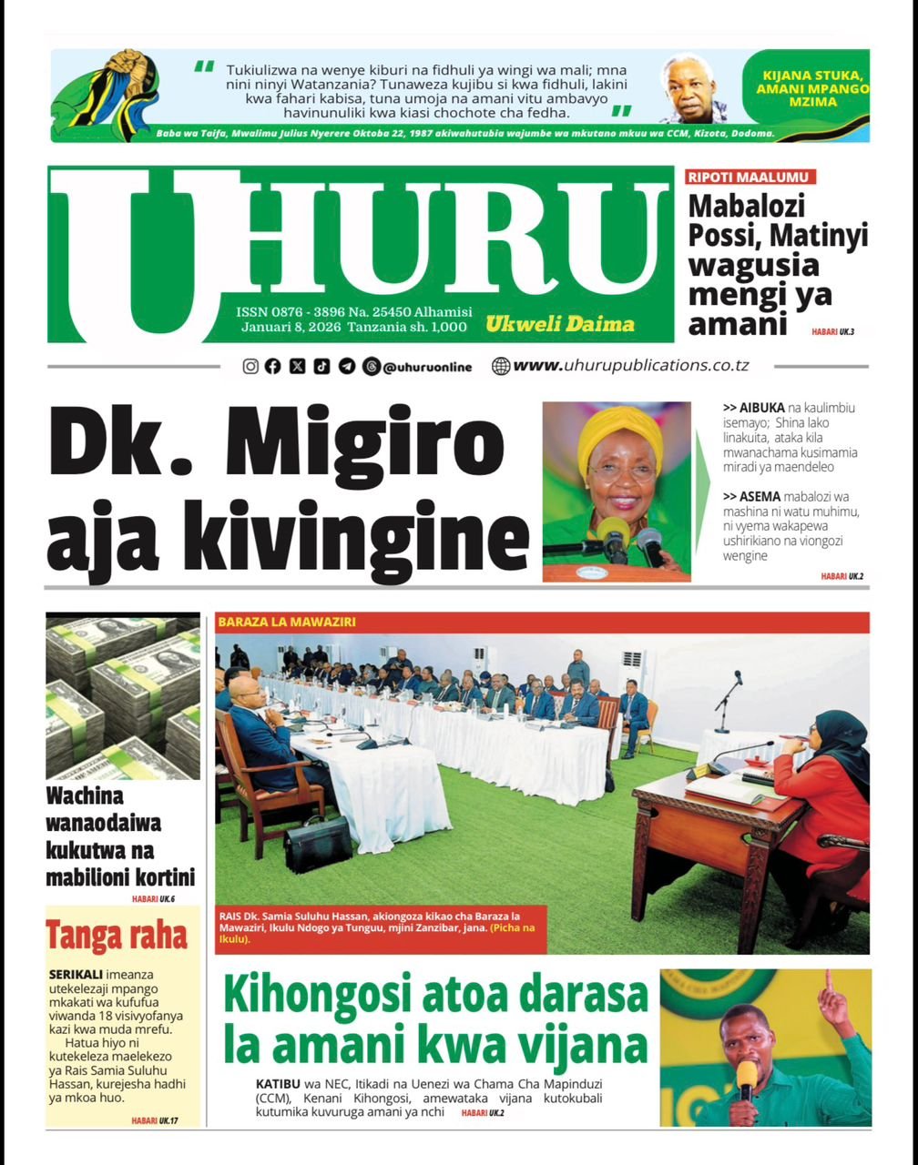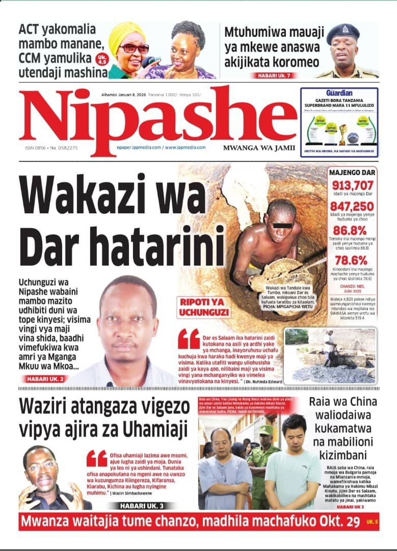 Magazeti ya leo Januari 8, 2026 Posted by assengablogtz@gmail.com Magazeti ya leo Januari 8, 2026 Image with Link Magazeti ya leo Januari 8, 2026, Pitia vichwa vya habari katika magazeti ya leo ya Alhamisi January 8, 2026. assengablogtz@gmail.com January 8, 2026