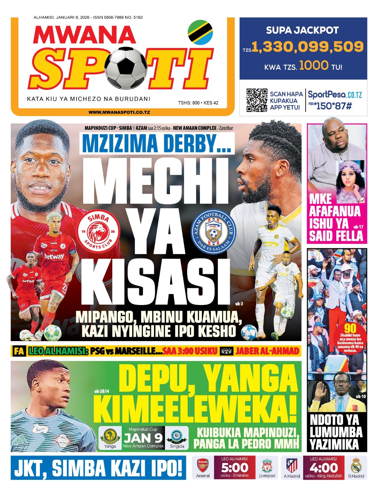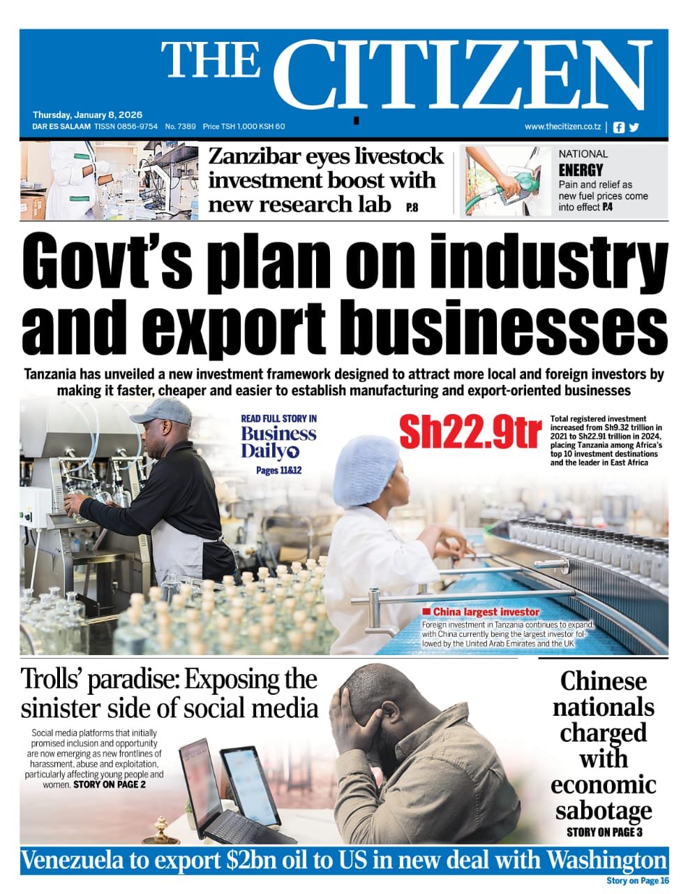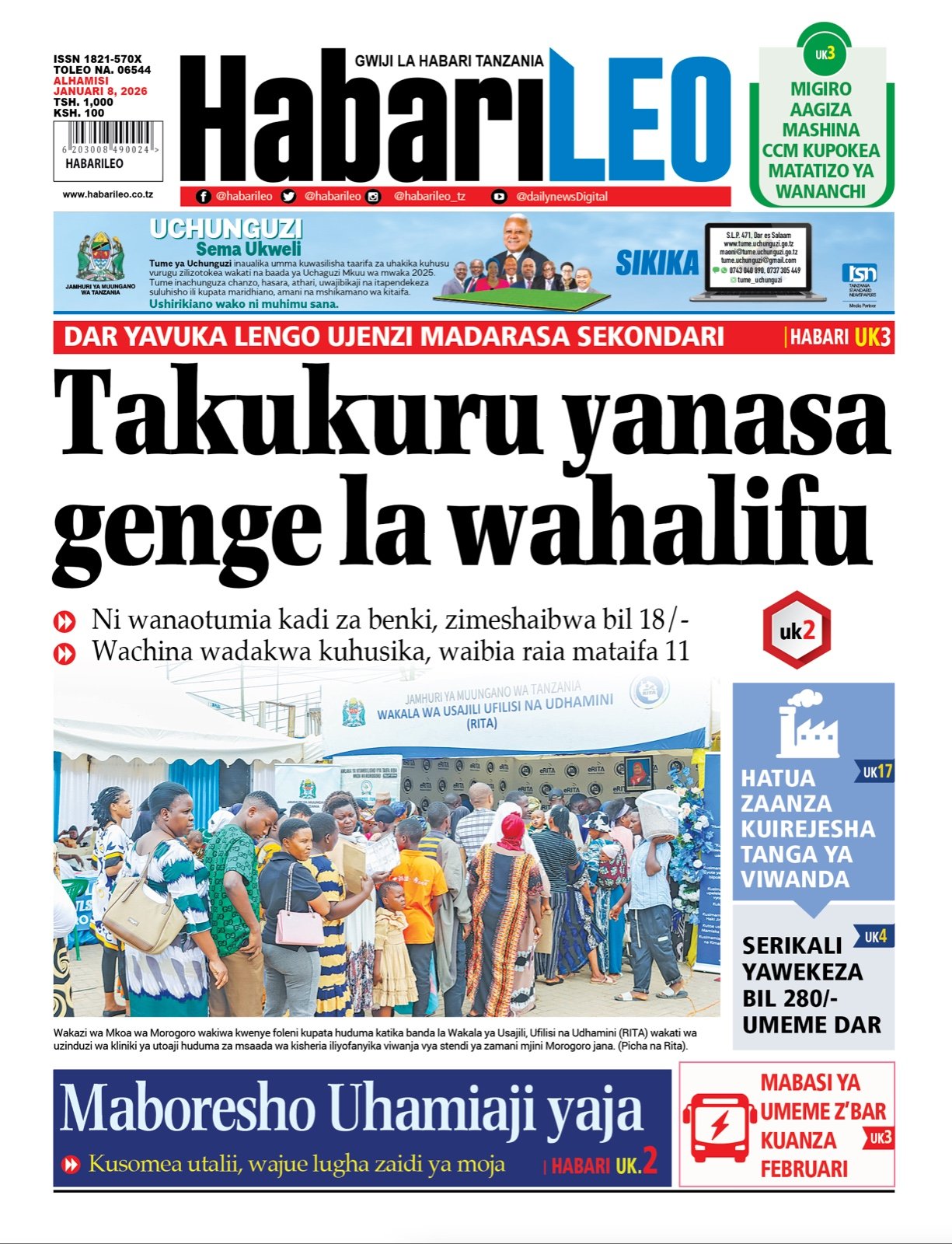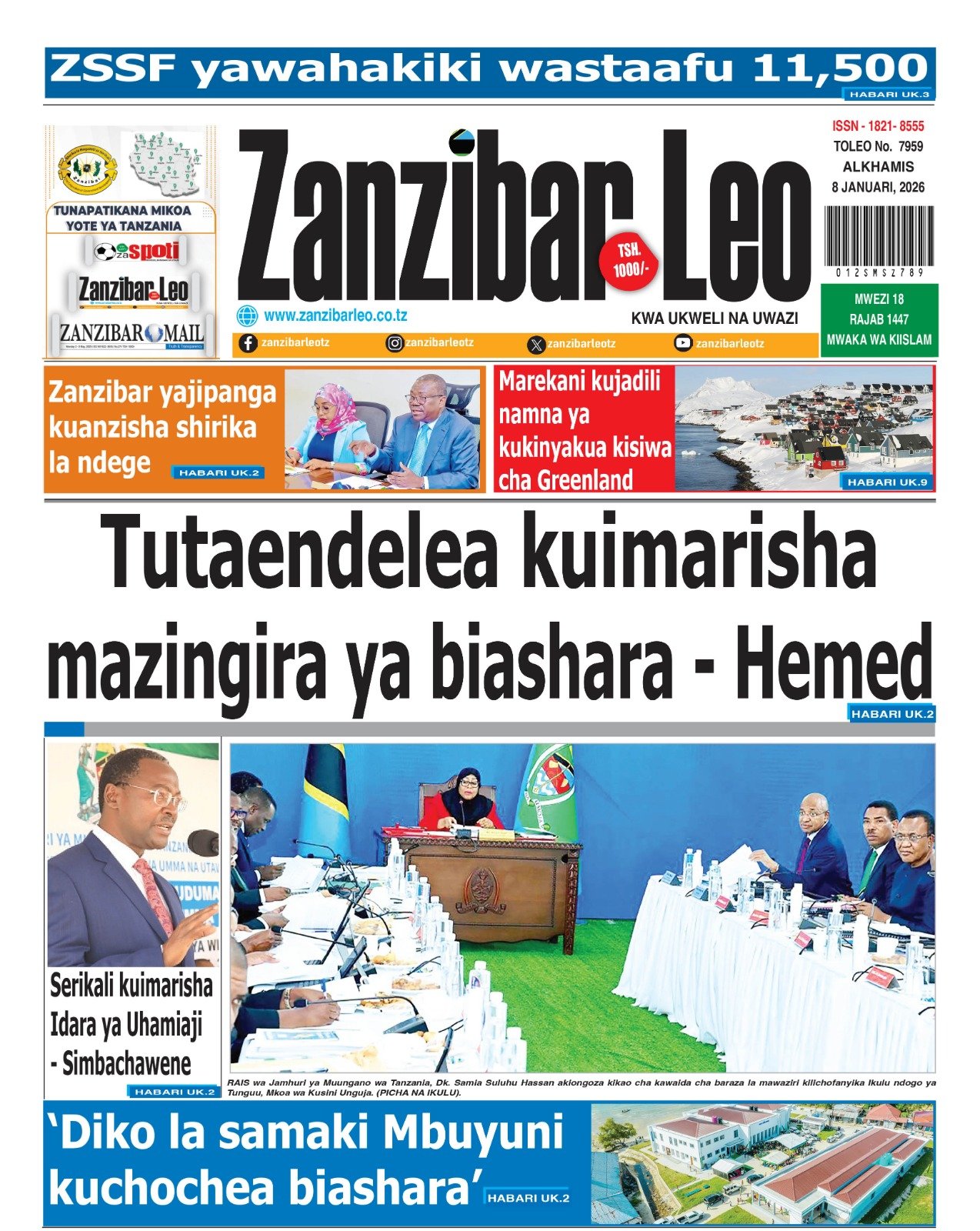 Magazeti ya leo Januari 8, 2026 Posted by assengablogtz@gmail.com Magazeti ya leo Januari 8, 2026 Image with Link Magazeti ya leo Januari 8, 2026, Pitia vichwa vya habari katika magazeti ya leo ya Alhamisi January 8, 2026. assengablogtz@gmail.com January 8, 2026